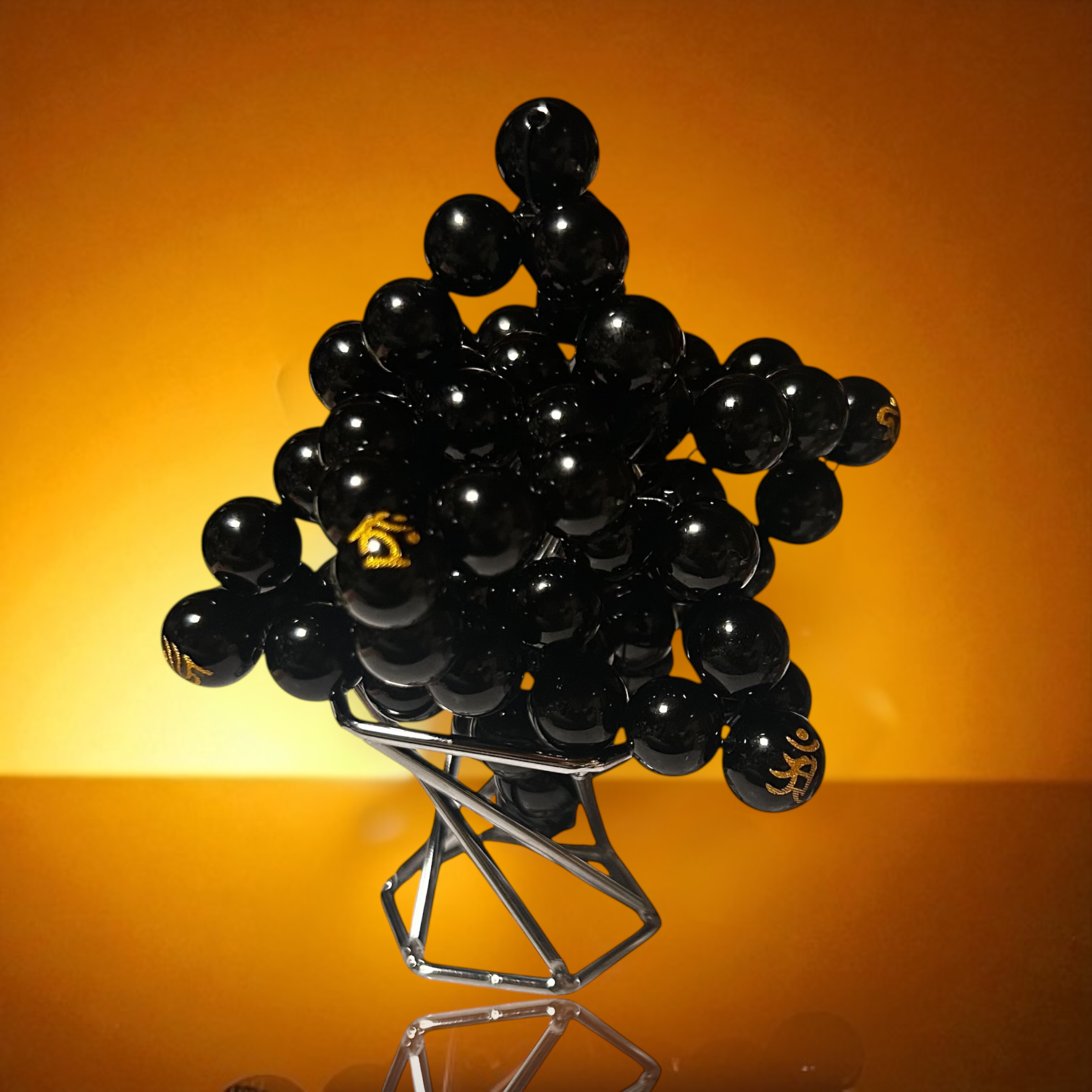 ひとつひとつの天然石には、対応する仏尊の**梵字(種子字)**を金彩で施し、