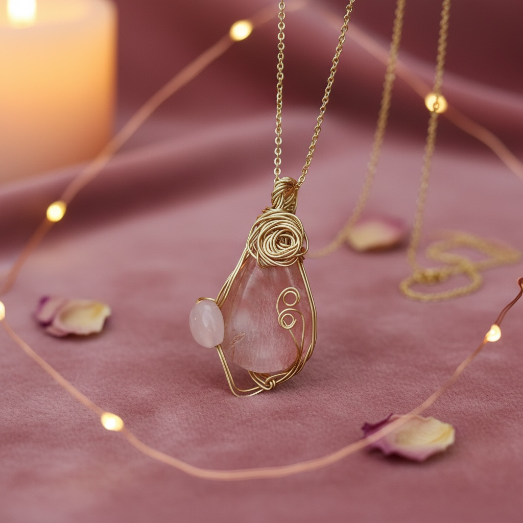└ 前向きな気持ち・明るさ・女性性の活性化装飾:ハート型ローズクォーツ(約6mm)